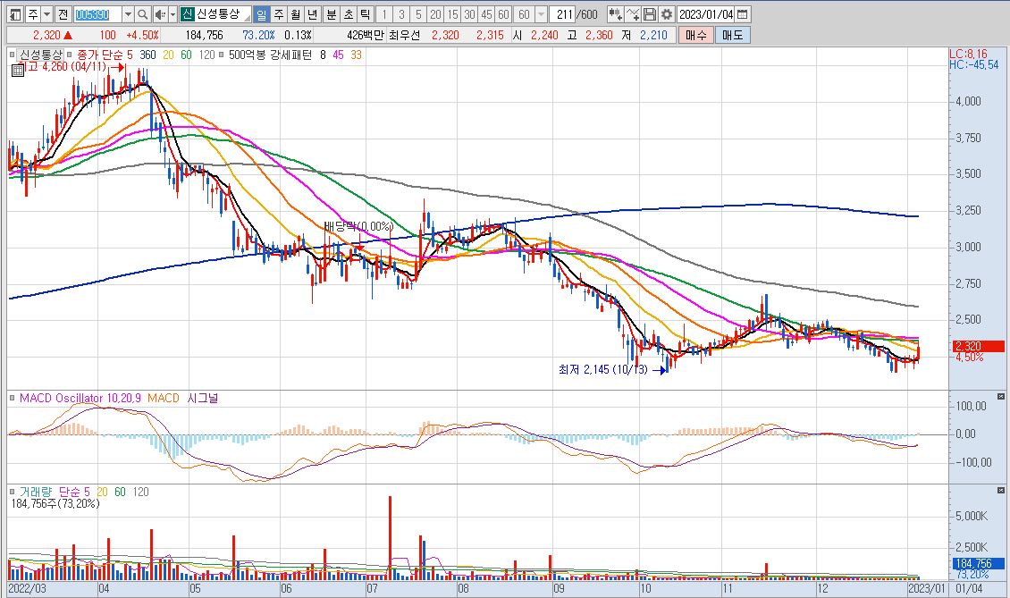 출처 : 키움증권 HTS 신성통상 일봉 그래프