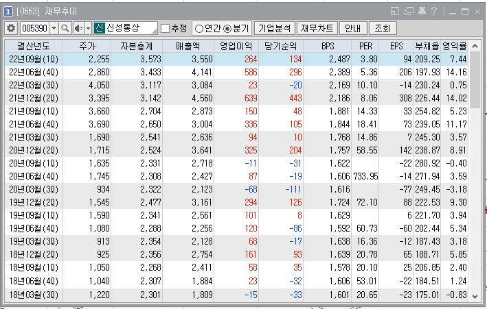 출처 : 키움증권 HTS 신성통상 재무추이