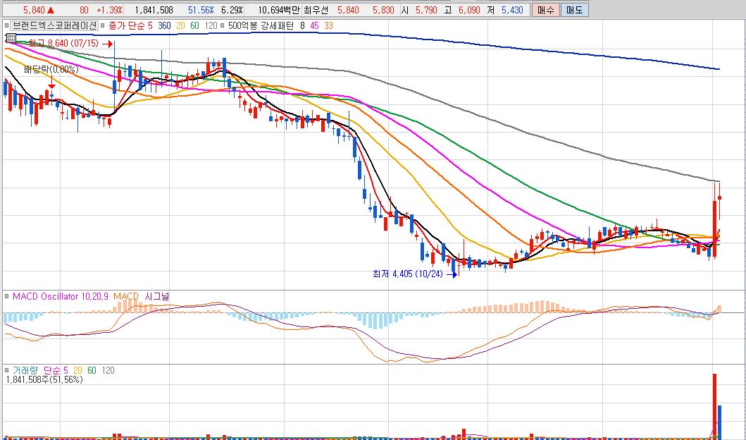 출처 : 키움증권 HTS / 브랜드엑스코퍼레이션 일봉 그래프