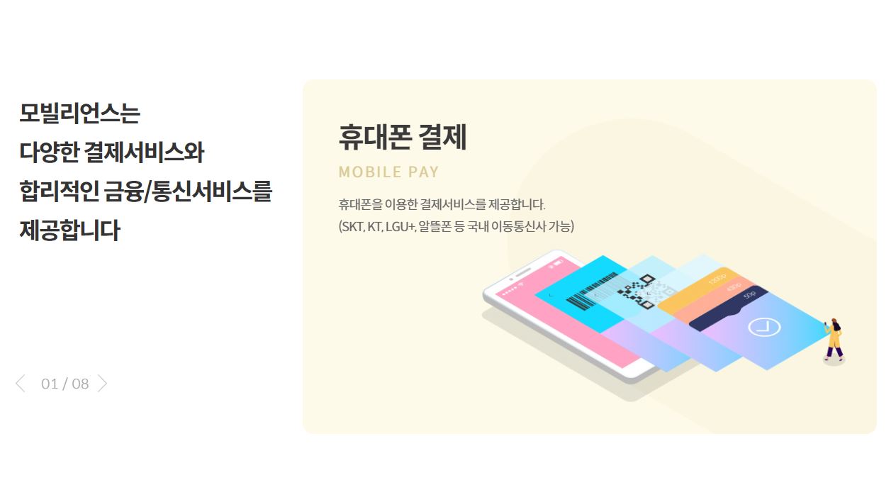 KG모빌리언스는 국내 휴대폰결제 1위 기업으로, 삼성페이, 네이버페이, 카카오페이, 토스, SSG페이, 페이코, LPAY 등에서 서비스를 제공하고 있다.